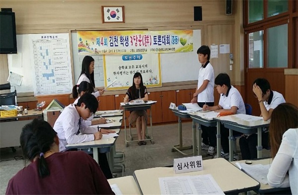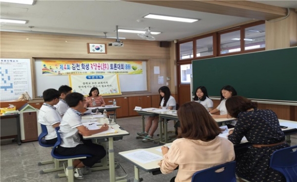 |  | | | ⓒ 김천내일신문 | | 경상북도김천교육지원청(교육장 장태덕)은 9월9일(수) 김천 시내 4개 초등학교(김천동부초, 금릉초, 김천신일초, 김천부곡초)와 2개중학교(김천중앙중, 김천중)에서『제4회 김천교육지원청 초․중학교 3담꾼 토론대회』를 개최하였다. 초·중학교를 각각 4개 권역과 2개 권역으로 나누어 180여명이 참석한 가운데 대회를 실시하였다. 각 학교별 예선을 통해 선발된 참가 학생들은 주어진 논제에 대해 찬성과 반대의 입장에 서서 열띤 토론을 벌였다. 초·중 59개 팀이 참가하여 성황리에 대회를 마쳤다. |  | | | ⓒ 김천내일신문 | |
