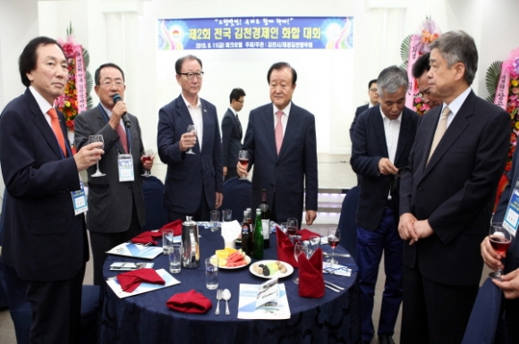 김천시 재경향우회(회장이상춘)는 지난9월11일 서울,부산,대구를 비롯한 김천 경제인 300여명이 참석한가운데 “가보자! 가보자! 나의 고향 김천으로”라는 슬로건을 내 걸고 파크호텔 대연회장에서 제2회 전국김천 경제인 화합대회가 성황리에 개최됐다.