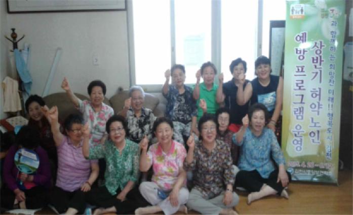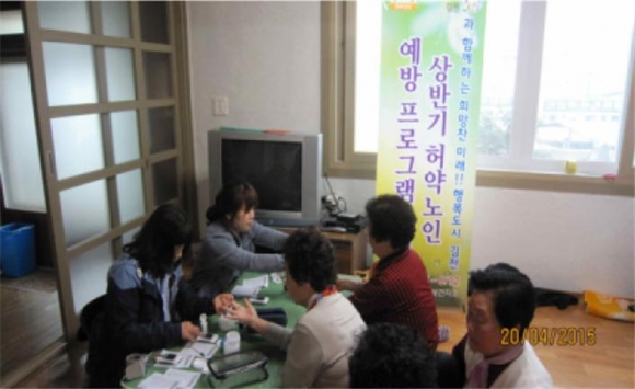 |  | | | ⓒ 김천내일신문 | | 김천시에서는 방문건강관리사업과 연계하여 의료취약계층에 있는 경로당 4개소를 선정하여 순회방문으로 9월14일부터 11월10일 8주에 걸쳐 하반기 허약노인예방프로그램을 운영할 예정이다. 이미 상반기에 4개 경로당을 선정하여 실시한 결과 경로당 어르신들로부터 좋은 호응을 얻었으며, 이번 하반기에도 TV시청 또는 무료한 시간을 보내거나 화투놀이로 지내는 노인들에게 다양한 신체활동 및 인지기능 증진의 위해 해당 프로그램을 진행한다.