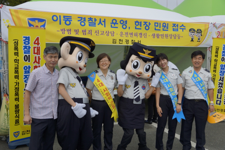 이날은 시민 약 5,000여명이 참여하는『행복김천복지박람회』가 개최된 날로, 행사에 참석한 시민들을 대상으로 경찰의 4대 사회악 근절활동 지속 추진 의지 표명과 전단지 및 홍보물(호루라기)를 배부하는 캠페인을 벌여 큰 호응을 얻었다.