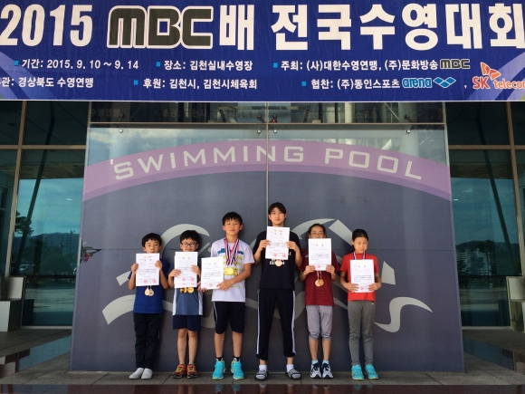 금릉초등학교(교장 김진국) 수영부(다이빙,경영)가 지난 9월 10일부터 14일까지 김천실내수영장에서 열린 2015MBC전국수영대회에서 금메달 7개, 은메달 1개, 동메달 5개를 획득하는 쾌거를 이루었다.