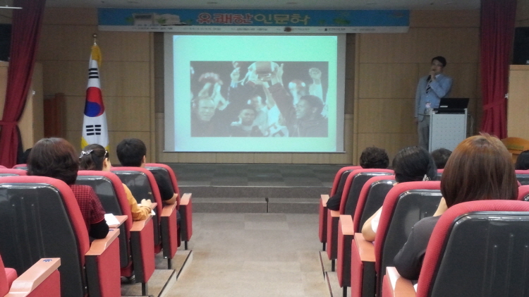 김천시립도서관에서는 지난 9월 15일, 시민 80여명이 참석한 가운데 이학준 교수를 초청하여 <영화로 만나는 스포츠>란 주제로「유쾌한 인문학」의 마지막 시간을 가졌다.
