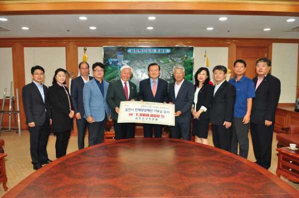 김천의 교육발전과 글로벌 인재육성을 위해 김천시 산악연맹(회장 송영헌)에서 김천시인재양성재단(이사장 박보생)에 장학기금 1백만원을 9월16일 기탁했다.