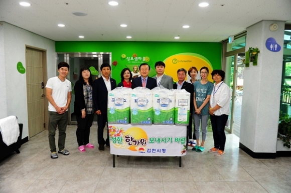 나눔을 실천하는 일환으로 김천시는 매년 중추절을 맞아 불우한 이웃과 소외된 사회복지시설을 격려방문 하였으며, 지역사회에 이웃사랑을 적극 실천해 나가는 행복한 명절분위기 조성에 힘쓰고 있다.