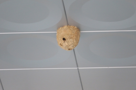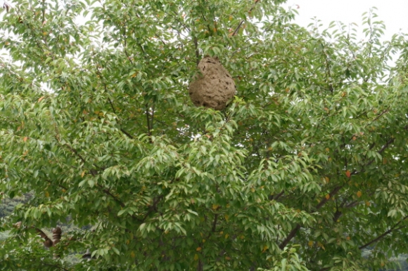 또 시의회 전정 처마에도 벌집을 짓고 있다. 벚꽃나무 벌집은 큰 수박 한배반정도의 크기이다.