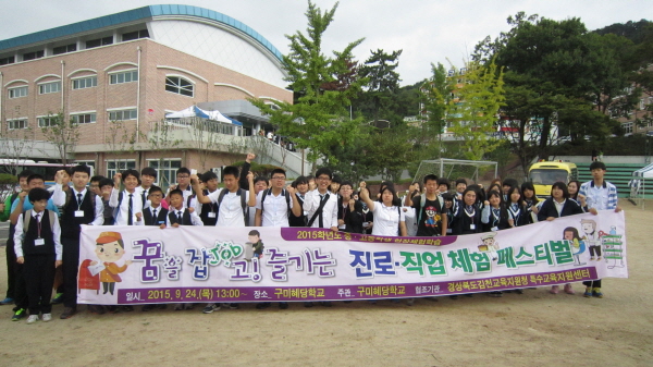 |  | | | ⓒ 김천내일신문 | | 경상북도김천교육지원청(교육장 장태덕) 특수교육지원센터에서는 9월 24일(목) 구미혜당학교에서 주관하는 ‘꿈 찾아 행복 찾아 떠나는 진로·직업 페스티벌’에 참여하였다.