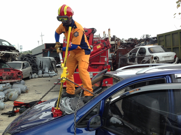이번 훈련은 교통사고 발생에 따른 운전석 요구조자 발생을 설정한 상태에서 실시됐다.