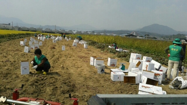 평화남산동 새마을지도자협의회(협의회장 이창도. 부녀회장 빈봉춘)는 지난 10월 3일 회원 30여명이 참여한 가운데, 사랑의 고구마 수확행사를 실시해 130상자의 고구마를 수확하였다.