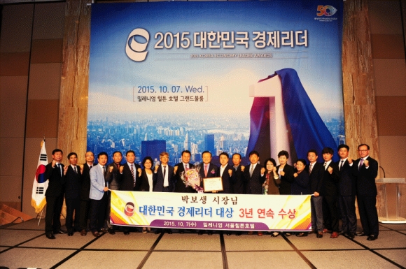 박보생 김천시장은 지난10월 7일 서울 밀레니엄 힐튼호텔에서 개최된 ‘2015 대한민국 경제리더 대상 시상식’(주관 중앙일보, 후원 JTBC/미래창조과학부/산업통상지원부)에서 혁신경영부문 대상의 영예를 안았다. 이번 대상 수상은 지난 2013년부터 3년 연속이다.