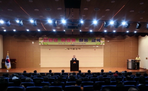 |  | | | ⓒ 김천내일신문 | | 김천시(시장 박보생)는 친환경농업 실천과 안전한 농축산물 생산 기반 구축을 위해 김천시농업기술센터 농업인교육관에서 지난 10월 7일 관내 400명의 농업인을 대상으로 “친환경 미생물 활용 교육” 을 실시했다고 전했다.