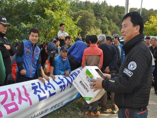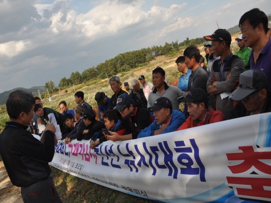 천고마비의 계절를 맞이하여 조사들은 포인트 추첨을 통하여 광활한 저수지 주변 산과 황금들, 제방으로 들어가 대물잡기에 몰입하였으며 비를 동반한 거센 바람으로 인하여 조사들은 많은 어려운 여건 속에 밤낚시에 들어갔다.