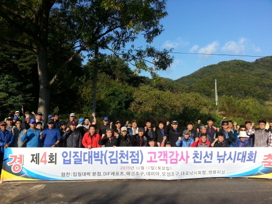 |  | | | ⓒ 김천내일신문 | | 김천시 성내동 입질대박(대표 조현호)에서는 지난10월11일 고객들에게 감사의 뜻을 전하는 “제4회 입질대박(김천점) 고객감사 친선낚시대회”가 해수 조우회를 비롯한 각 조우회 회원 100여명이 참석한 가운데 상주 공검면 공검 저수지에서 펼쳐졌다.