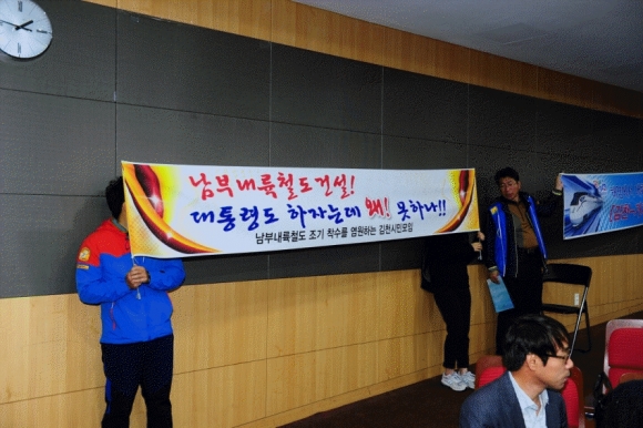 한편 이날 본 토론회장에는 버스로 상경하여 참석한 남부내륙철도 조기 착수를 염원하는 김천시민 40여명이 현수막과 피켓을 들고 뜨거운 열망을 표출하는 등 토론회장을 뜨겁게 달구었다.