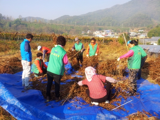 한편 들깨 타작을 마친 새마을남녀지도자들은 1社 1團體 자매결연업체인 (주)아주화학을 방문하여 회사 뒷마당의 낡은 울타리을 철거하고 무성한 잡풀을 말끔히 정리하는 등 환경정비에 구슬땀을 흘렸다.