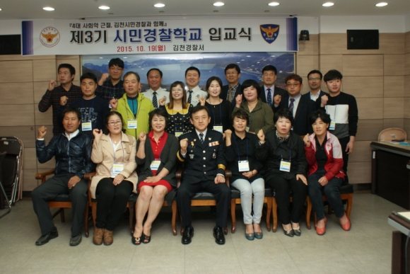 이날 가진 시민경찰학교 입교식은 지역주민에게 경찰업무 이해와 체험기회를 제공해 질서의식 함양과 방범의식 제고 등 민․경 협력치안의 장을 마련하기 위해 준비된 것으로 이날 시민경찰학교 입교한 교육생들을 김천시에 거주하는 지역 주민 중 타의 모범이 되는 자들로 추천 및 홍보를 통해 선발되었으며, 이날 선발자 중 경찰이 꿈인 대학생도 적극 지원하였다.