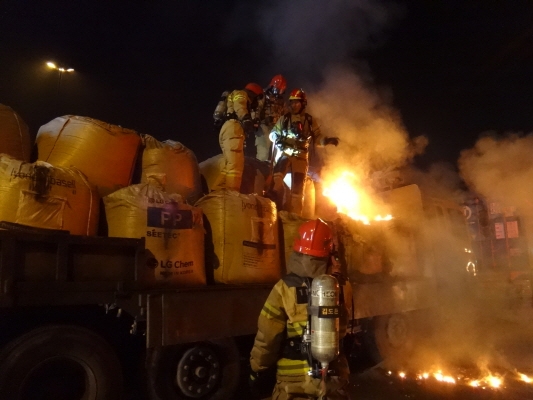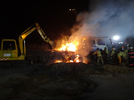 김천소방서(서장 박근오)는 지난10월21일 23시경 농소면 신촌리 경부고속도로 193.5Km 지점에서 25톤 화물차의 적재물에서 원인을 알 수 없는 화재가 발생하여 진화에 나섰다.