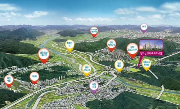 김천혁신도시 남동쪽 1.4km(네이버지도 직선거리 기준)에 위치한 <남혁신 코아루 푸르나임>은 KTX김천역까지 2km, 동김천IC까지 3km, 영남대로로 구도심과 혁신도시를 바로 이어주는 혁신적인 교통비전을 누린다. 12개 공공기관이 올연말까지 이전완료할 예정으로 각종 기반시설 및 생활편의시설을 편리하게 누리는 초혁신생활권과 혁신도시 배후주거지의 개발비전을 누리는 최대수혜지로 손꼽힌다. 가까운 대구,울산에서도 혁신도시가 완성단계에 이르면서 아파트매매가가 7천만원~1억여만원까지 상승하는 현상을 보이고 있다.