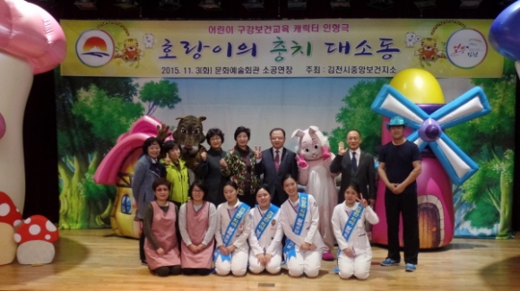 김천시 중앙보건지소에서는 지난11월3일 2회에 걸쳐 김천문화예술회관 소공연장에서 관내 유치원 및 어린이집 원아400여명이 참석한 가운데 구강보건인형극 『호랑의의 충치 대소동』공연을 성황리에 개최하였다.