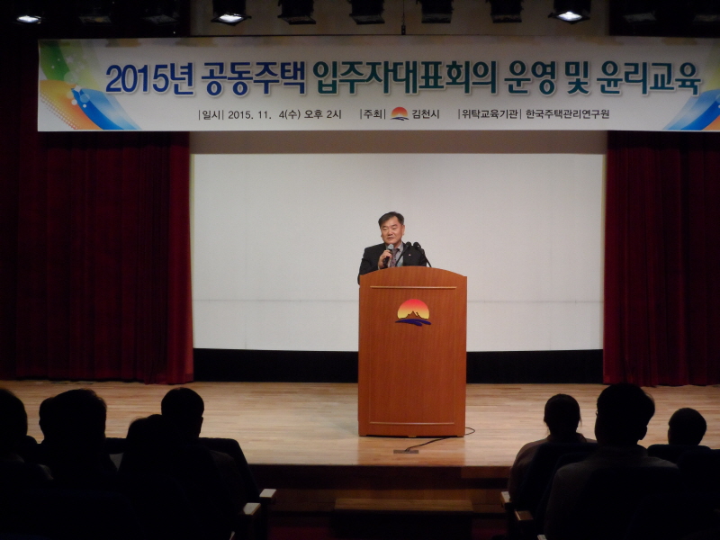 |  | | | ⓒ 김천내일신문 | | 김천시(시장 박보생)는 지난 11월 4일 문화예술회관 소공연장에서 공동주택 입주자대표회의 구성원 및 관리사무소장 등 100여명이 참석한 가운데「2015년 공동주택 입주자대표회의 운영 및 윤리교육」을 실시했다.
