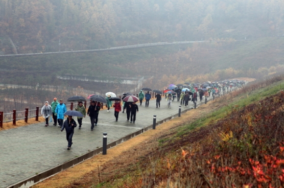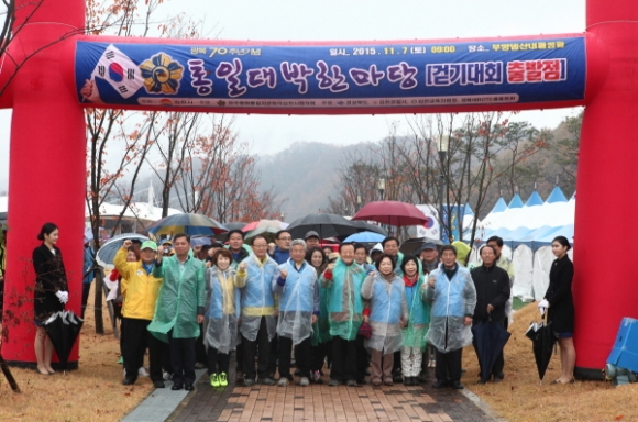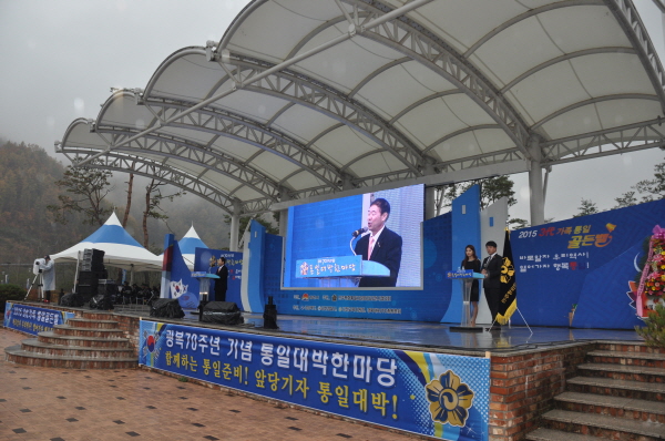 국립경찰교향악단과 백두 한라예술단, 초청가수의 식전공연과 참석한 내빈들과 각계각층 인사들의 통일을 염원하는 영상메시지와 풍선을 띄웠다. 통일 대박맞이 걷기대회 반환점인 부항정에서 공인 인증비 제막식을 가지고 ,시민과 학생들을 상대로 OX퀴즈, 패자부활전, 난이도별 퀴즈 3대가족 통일 골든벨이 진행됐다. 또 북한음식체험, 통일 인증샷, 페이스페인팅, 건강체험, 네일아트, 풍선아트 등 부대행사도 펼쳐졌다.