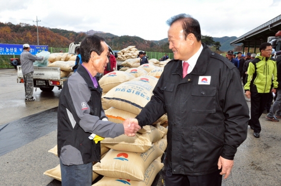 김천시(시장 박보생)는 지난 11월 9일 공공비축미곡 건조벼 첫 수매현장인 대덕면 대산농협APC 찾아 어려운 여건 속에서도 땀 흘려 풍년농사를 달성한 농민들의 노고를 격려했다.