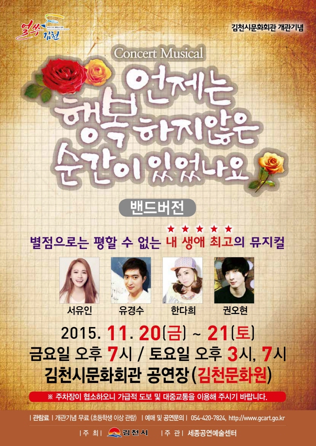 김천시문화회관 개관기념 뮤지컬『언제는 행복하지 않은 순간이 있었나요 』공연