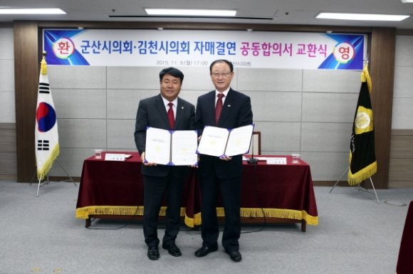 김천시의회(의장 김병철)는 지난11월9일 군산시의회(의장 진희완)를 방문하여, 양측 지방의회 간 자매결연 추진을 위한 공동합의서를 교환했다고 밝혔다.