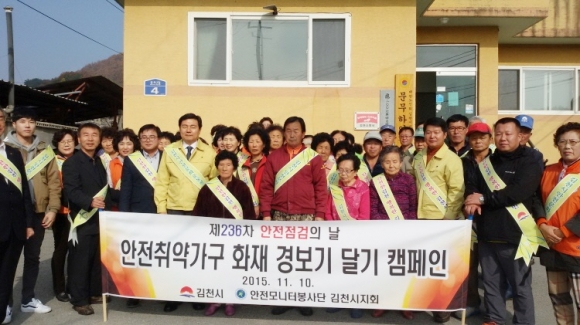 화재경보기 설치는 김천시에서 안전모니터봉사단 김천시지회에 교부한 보조금(2백만원)으로 구입하여 봉사단원들이 직접 설치함으로써 경비 절감은 물론 봉사단원으로써의 자긍심도 높이는 계기가 되었다.
