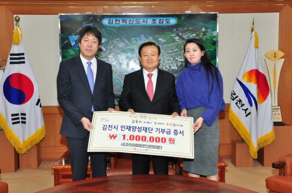 |  | | | ⓒ 김천내일신문 | | 김천의 교육발전과 글로벌 인재육성을 위해 사)코리아파파로티문화재단(대표 박경식)에서 김천시인재양성재단(이사장 박보생)에 장학기금 1백만원을 기탁했다.