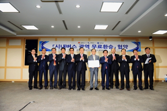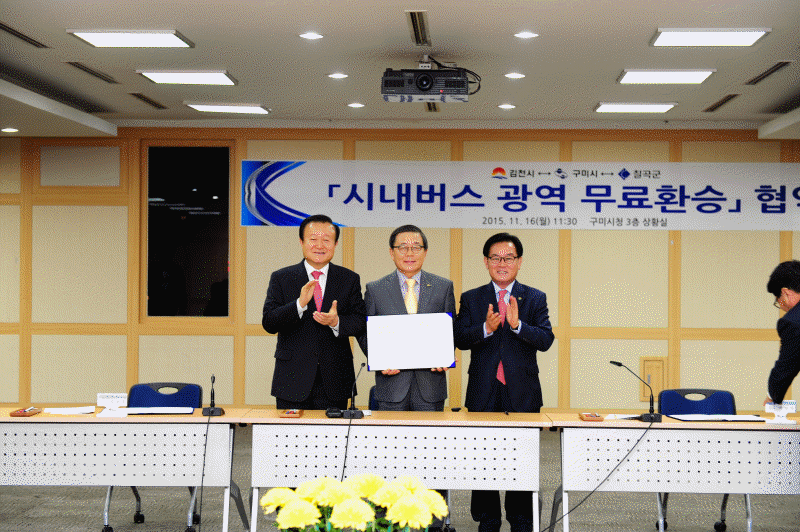|  | | | ⓒ 김천내일신문 | | 김천시(시장 박보생), 구미시(시장 남유진), 칠곡군(군수 백선기)은 11월 16일 구미시청 3층 상황실에서 시내버스 광역 환승 업무협약식을 갖고, 오는 12월 1일부터 3개 시ㆍ군 전 지역에서 시내버스 광역환승제를 시행하기로 합의했다.