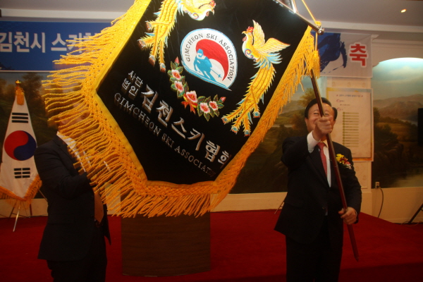 식전행사로 스키연맹의 동영상을 관람하고 박보생 김천시장은 김천스키협회를 인준함에 따라 초대 임준호 회장에게 연합회기를 전달하였다.