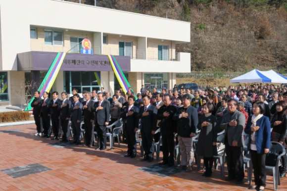 김천시(시장 박보생)는 11월20일 증산면 평촌리 주민복지센터에서 박보생 김천시장을 비롯한 지역시의원, 증산면 기관단체장 및 지역주민 200여명이 참석한 가운데 ‘시루메권역 종합정비사업’ 준공행사를 가졌다.