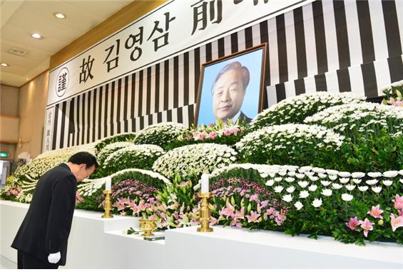 김관용 도지사는 오전 9시 도청 간부공무원들과 함께 분향소를 찾아 헌화․분향하고 故 김영삼 前 대통령에 대한 애도와 명복을 빌었다.
