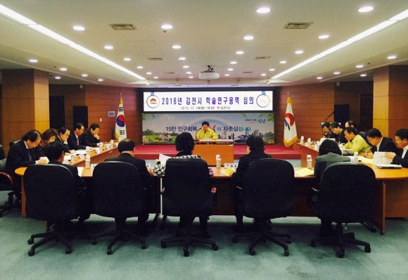 시는 지자체 학술·정책연구용역 추진과정의 투명성과 효율성을 높이기 위해 국민권익위원회의 권고에 의해 2014년 12월에 ‘김천시 학술연구용역심의위원회 설치 및 운영규정’을 제정하고, 2015년 3월에 ‘학술연구용역 심의제 실시 기본 계획’을 수립하여 올해 처음으로 학술연구용역을 심의했다.