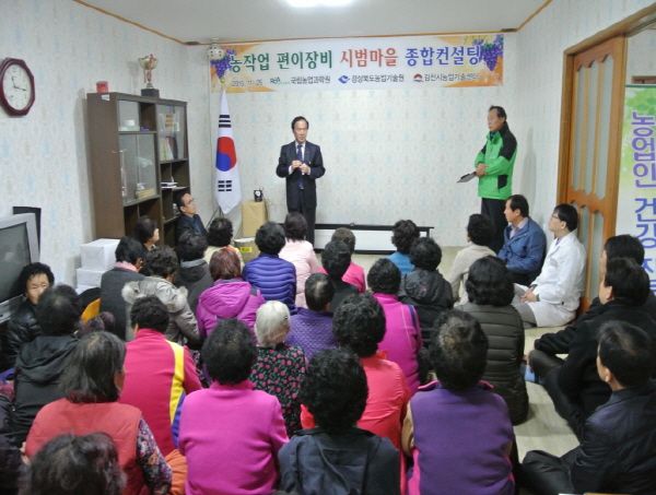|  | | | ⓒ 김천내일신문 | | 김천시(시장 박보생)는 지난 11월 25일 농촌진흥청과 함께 농소면 입석리 마을회관에서 새로운 농작업 편이장비 확대 보급을 위한 현장지원에 나섰다.