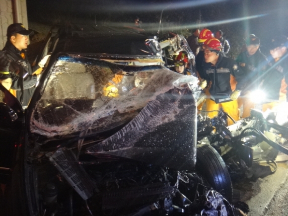 김천소방서, 버스 대 승용차 교통사고 구조출동