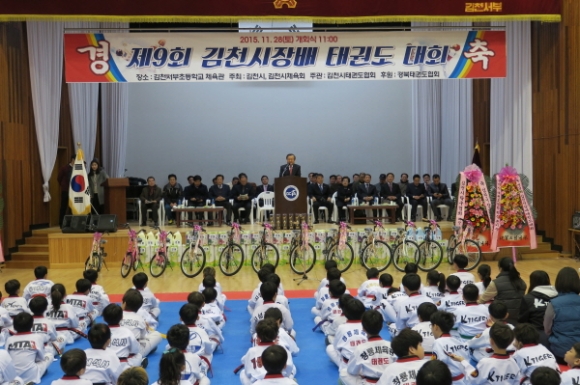 김천시 태권도협회(회장 김문환)는 용인대백호, 드림 도장 외 13개 도장, 유치부,초등부,중등부, 고등부 400여명의 선수들이 참석한가운데 제9회 김천시장배 태권도대회가 11월28일 서부초등학교 강당에서 성황리 개최됐다.