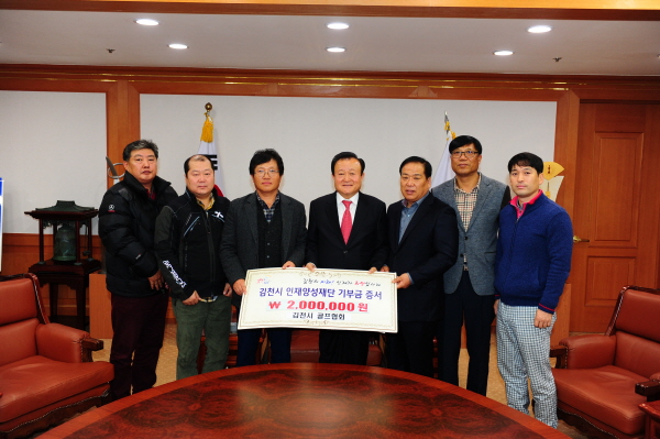 11월 30일 2층 접견실에서 최원철 김천시 골프협회 회장은 “지역 발전의 밑거름은 인재양성에 있다는 사실에 회원 모두 공감하여, 십시일반으로 2백만원의 장학금을 기탁하게 됐고, 우리협회의 기탁으로 기부문화가 확산되기를 바란다”고 말했다.