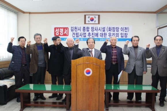 그러나, 김천시에서 추진하고 있는 종합장사시설 건립(화장장 이전)사업과 관련하여 해당 지역주민들과 김천시간의 첨예한 갈등과 대립으로 우리시 지역발전이 저해되고 있는 작금에 개탄을 금하지 아니할 수 없어 다음과 같이 입장을 밝힌다.
