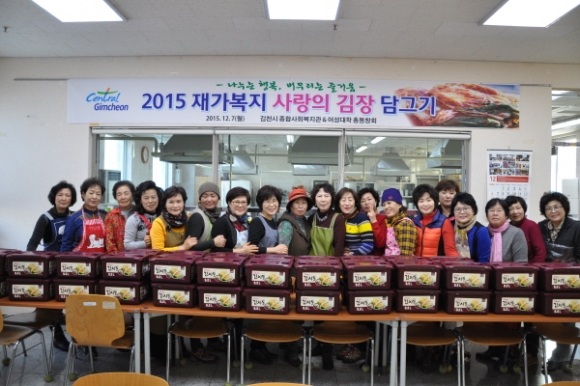 |  | | | ⓒ 김천내일신문 | | 김천시 종합사회복지관(관장 조영애)에서는 지난 12월 7일 김장김치 150포기를 담가 관내 독거노인, 장애인 등 재가복지대상자 50세대에게 전달하는 “사랑의 김장김치 담그기” 행사를 가졌다.