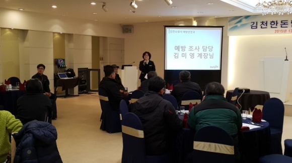 |  | | | ⓒ 김천내일신문 | | 김천소방서(서장 박근오)는 지난 12월 8일 저녁 김천 파크호텔에서 축산관계자 소방안전교육 및 간담회를 가졌다.