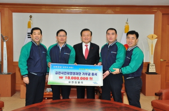 지난 12월 8일 2층 접견실에서 이관호 유한킴벌리김천공장장은 우수한 인재육성에 조금이나마 보탬이 되고자 김천시인재양성재단에 1천만원을 기탁하게 됐다고 말했다. 한편 유한킴벌리는 2009년부터 현재까지 7천만원을 김천시인재양성재단 후원금으로 기탁을 하였다.