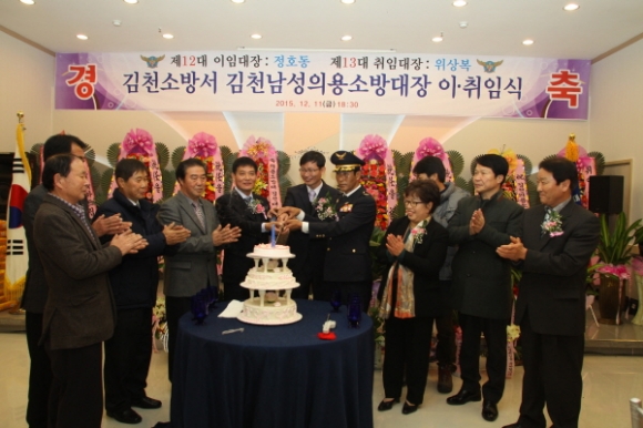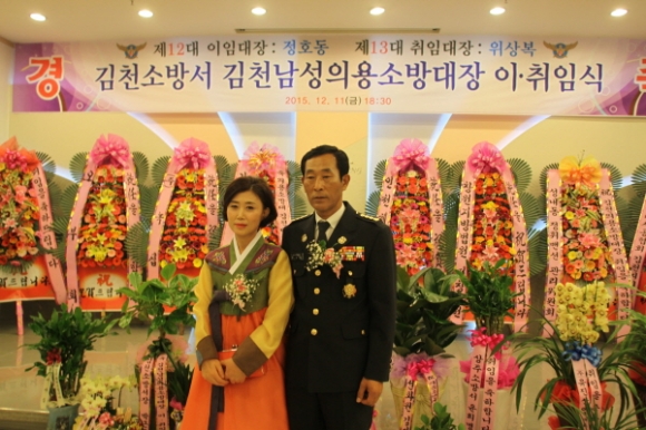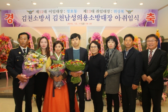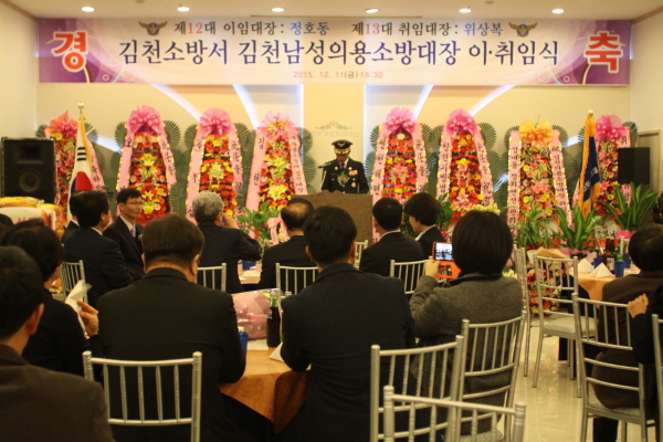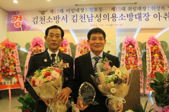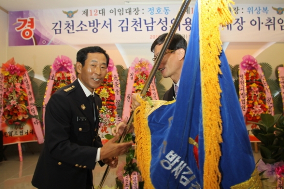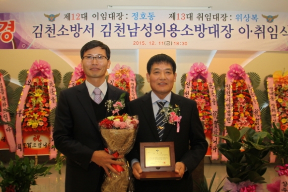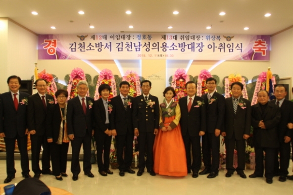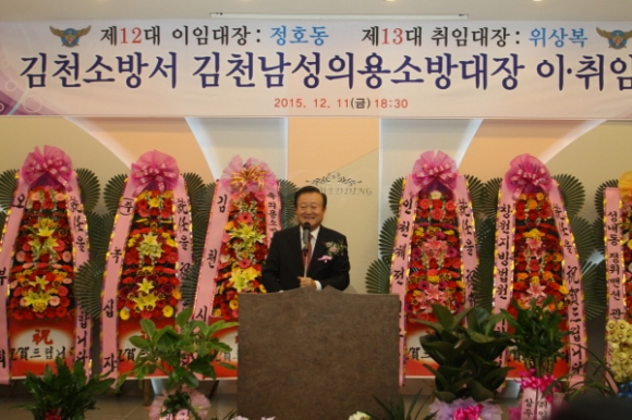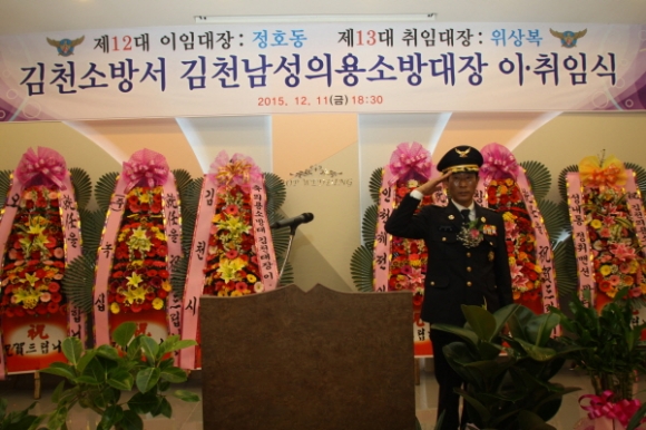 김천 소방서 남성소방의용대는 지난12월11일 의용소방대원 및 가족들이 참석한 가운데 제12대 정호동대장, 제13대 위상복대장의 이,취임식을 가졌다.