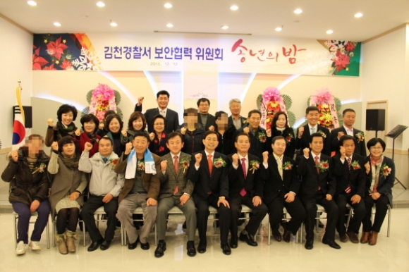 |  | | | ⓒ 김천내일신문 | | 김천경찰서(서장 김 훈찬) 보안협력위원회(위원장 여상규)에서는 지난 12월 12일 김천시 신음동 탑웨딩에서 봉사단체, 경찰협력단체, 보안협력위원, 탈북민 35세대를 초청하여 『2015년 김천경찰서 보안협력위원회 탈북민 송년의 밤 행사』를 개최하였다.