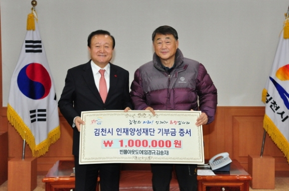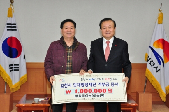 김천의 교육발전을 위해 평화로상가협의회 회원들이 하나된 힘을 모아 김천시인재양성재단에 장학기금 총 500만원을 14일 기탁했다.
