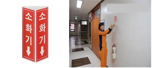 |  | | | ↑↑ 소화기 위치 표지, 보이는 소화기 및 위치표지 높이 | | ⓒ 김천내일신문 | |