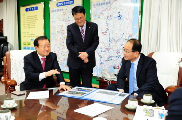 이날 박 시장은 이성해 청장과의 면담에서 감천 하도준설에 따른 지하수위 저하로 용수확보가 어렵고, 영농에 지장을 초래할 것을 우려하고 있는 조마면 신안, 장암들 주변 주민들의 건의사항을 설명하면서,