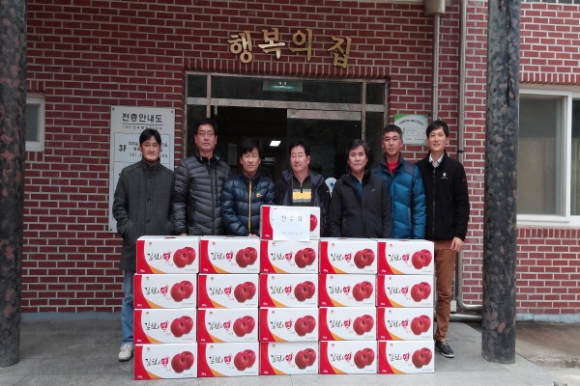 지난 12월 15일 김천시농업기술센터(소장 박창기)를 통하여 따뜻한 사랑과 관심이 필요한 베다니 성화원, 임마뉴엘 보육원, 행복의 집을 방문하여 사과 70박스/10kg를 전달하고 위문하였다.