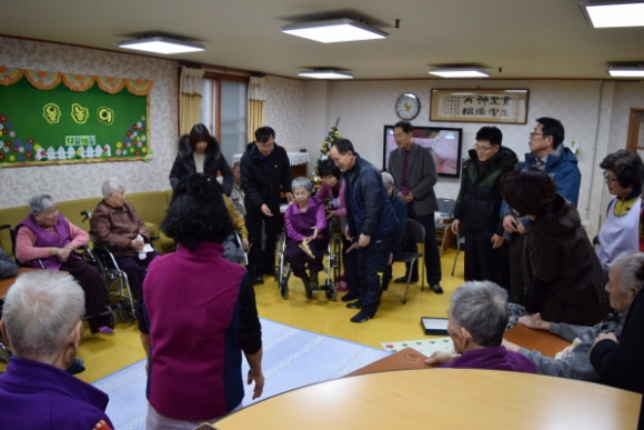 이날 김천교육지원청 직원 20여명은 노인 전문 요양시설 어르신들의 쾌적한 환경을 위해 실내․외 환경정리 및 대청소를 실시하고 어르신들의 말벗, 식사 도우미 등의 봉사활동을 통해 이웃을 돌아보게 하는 의미 있는 시간을 가졌다. 또한, 시설운영에 필요한 전기온풍기를 전달하는 등 따듯한 마음을 전했다.
