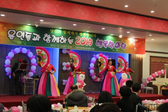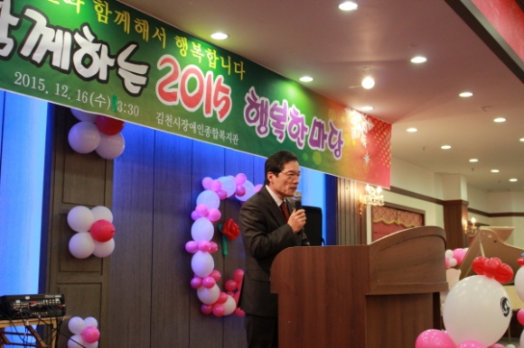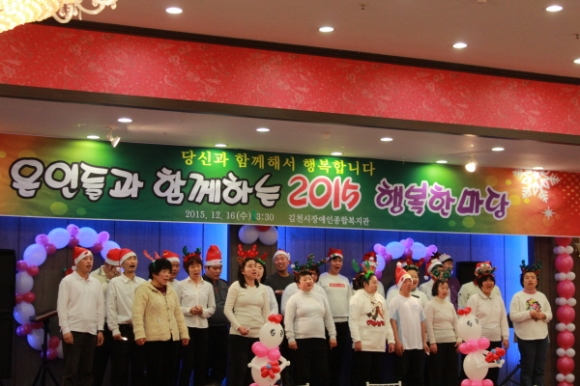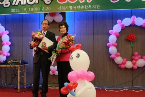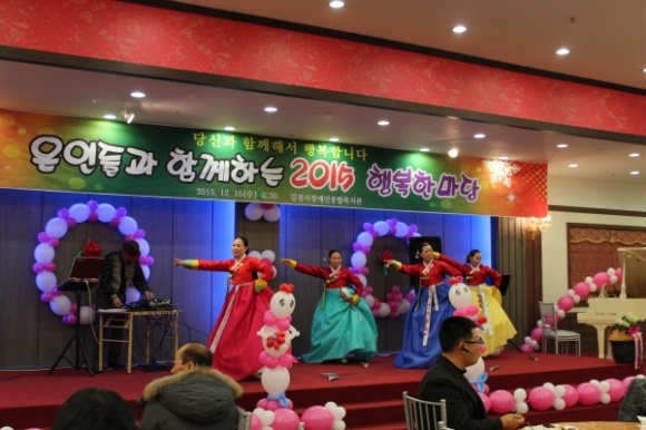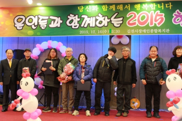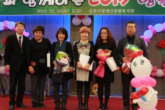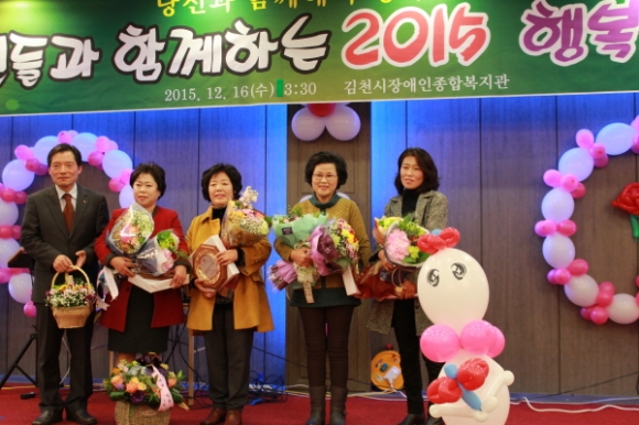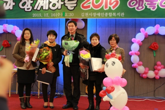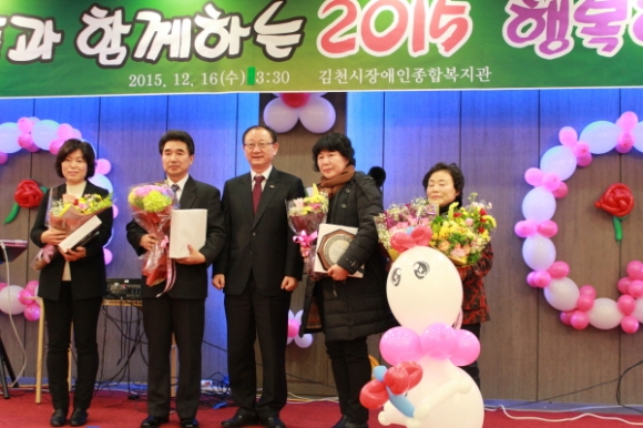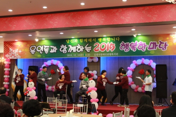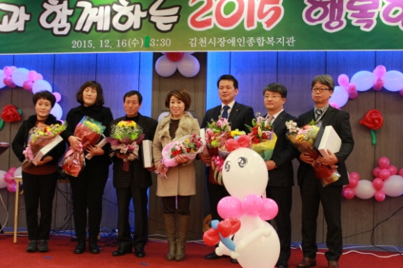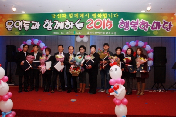 1부 행사로 복지관의 프로그램을 이용하며 준비한 해도두리 합창단, 해금공연단, 수화공연단 공연을 실시하여 그동안 갈고 닦은 기량을 뽐낼 수 있는 시간을 가졌으며, 행사장 입구에는 복지관 이용자들이 한 해 동안 복지관을 다니면서 프로그램을 통해 배우고 익힌 작품(한지공예, 미술, 클레이 등)들이 전시되어 노력의 결과를 둘러볼 수 있었다. 2부 행사 ‘은인들과 함께하는 2015 행복 한마당’은 한 해 동안 복지관을 위하여 관심과 사랑을 보내 준 후원자, 자원봉사자에게 감사의 마음을 표현하고 지속적인 관심과 지지를 이끌어 내고자 실시되었으며, 김병철 김천시의회 의장 및 의원, 이신희 김천세무서장, 정근재 운영위원장, 장애인단체장 등 지역 유관기관들의 주요 인사들이 참석하여 격려해주었다. 이어 김천시장 표창(김천농협 농가주부모임 박윤숙, 시설봉사단 송말순, 국화봉사단 임진향, 김천농협 부녀회 강원화), 김천시의회 의장 표창(농가주부모임 김천시연합회 김순교, 무궁화봉사단 김호숙)이 수여됐다. 또, 김천세무서장 표창(대한산악연맹 경북 김천시연맹 정문호), 한국지체장애인협회장 표창(이웃사랑봉사단 하승희, 삼산이수봉사단 임종자, 김천경찰서 전의경어머니회 김인선, 단비봉사단 박옥순), 한국장애인복지관협회장 표창(경북보건대학교 보건복지과, 신한은행 김천금융센터, 김천중앙새마을금고 다빈봉사단 엄태영, 김천신협 김영길), 운영위원장 표창(한우리(주) 대표 박선엽, 연꽃봉사단 노나경, 오공회봉사단 황순애, 한마음이미용봉사단 박진희, 경북보건대학교 간호학과 정경순, 경북기능봉사회 이분순), 장애인종합복지관장 표창(블랙홀봉사단 우미양, 김천여성의용소방대 김기숙, 새김천새마을금고 박세분, 코아루2차아파트 배정민, 다솜봉사단, 여성대학총동창회 이인숙, 한국장애인고용공단 경북지사 김종문, 복지관 이용고객 유박, 주혜미, 왕동찬), 관장 감사장(해두두리합창단 장신자, 최지은, 김상숙, 최영훈)이 수여됐다. 또한, 포토 페스티벌 시상으로 지난 장애인 주간동안 복지관 내 봄의 계절을 느낄 수 있는 모습을 이용고객들이 직접 사진으로 촬영하여 공모 후 당선작 5명에게 시상 하였다. 3부 행사에서는 경상북도기능봉사회의 축하공연으로 후원자, 자원봉사자 모두가 함께 즐길 수 있는 친교의 시간으로 진행되어 서로 간의 단합과 화합의 장을 마련했다. 박선하 관장은 “2005년 개관 때부터 지금까지 여기 계신 후원자님, 자원봉사자님의 도움으로 장애인의 재활과 복지실현 등 긍정적 변화들이 많았다”며, “2015년 한해 동안 지역장애인에게 따뜻한 관심과 헌신적인 애정으로 장애인의 재활과 자립을 위해 노력하고 장애인복지를 위해 노고를 아끼지 않은 은인들에게 깊은 감사를 드린다”며 인사말을 전했다.